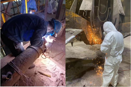 国庆当天,中控值守人员在拆1#炉左侧辅燃准备打焦,这项工作又热又累又脏,劳动强度非常大,工作服干了湿、湿了干,但他们不怕苦累、毫无怨言,默默坚守。