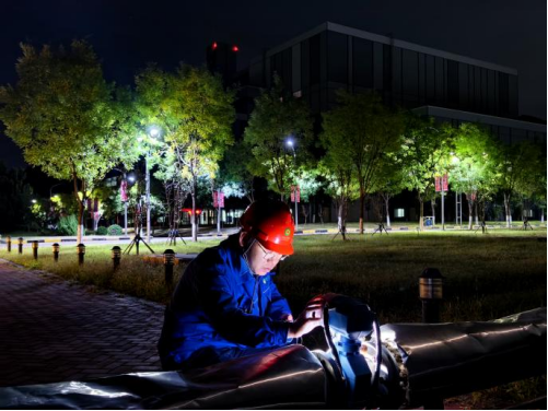中秋夜凌晨2点,运营人员在检查污水处理厂调节池流量计。在皎皎星月的映照下,他们的环保理想都在熠熠生辉。